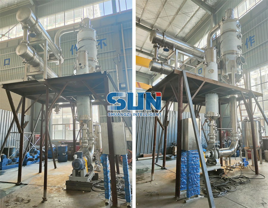 Het werkprincipe is als volgt: onder de geforceerde voortstuwing van de circulerende pomp stroomt het materiaal met hoge snelheid (meestal met een stroomsnelheid van 1,5-3 m/s) in de verwarmingsbuis. Na te zijn verwarmd door stoom in de schaalzijde, komt het de verdampingskamer binnen voor flitsverdamping en wordt het water ontladen in de vorm van secundaire stoom. Het geconcentreerde materiaal stroomt vervolgens terug door de circulatiepijpleiding en ondergaat herhaaldelijk het "verwarming - verdamping" -proces totdat de doelconcentratie wordt bereikt. Omdat de concentratie wordt bereikt door slechts één verdampingseenheid (enkel effect), is de structuur relatief eenvoudig en is het besturingssysteem gemakkelijk te bedienen.