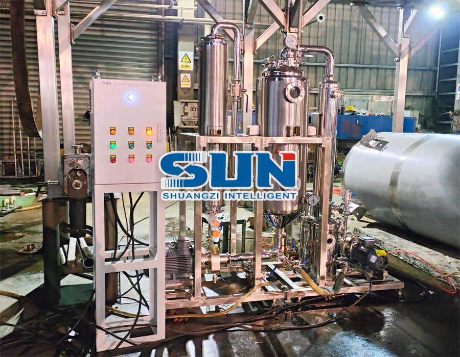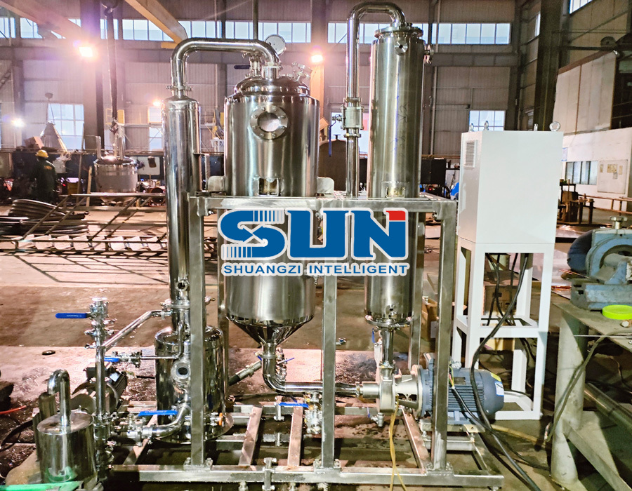 De apparatuur drijft de snelle stroom van de materiaalvloeistof door een ingebouwde circulerende pomp, waardoor een stabiele circulatie tussen de verwarmingskamer en de verdampingskamer mogelijk is. Dit verbetert niet alleen de efficiëntie van de warmteoverdracht, maar voorkomt ook lokaal oververhitting, schalen of cokes van de materiaalvloeistof. Het is met name geschikt voor warmtegevoelige en hoge viscositeitsmonsters (zoals enzympreparaten, plantenextracten, traditionele Chinese geneeskunde-extracten, biologische stoffen, vruchtensap, enz.).